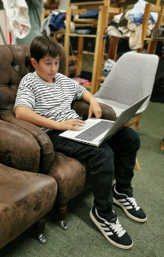 Sorgfältig designt er Werbeplakate, schraubt Möbel zusammen und unterstützt, wo er kann.